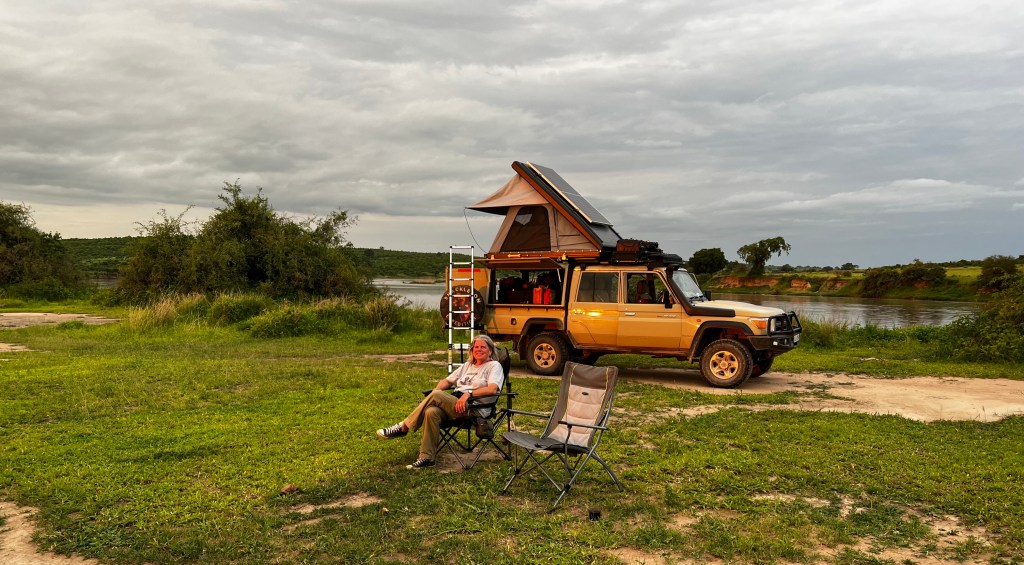 At night we are visited by a genet. It waits for the bugs at the decoy light (we set up a lamp some paces away from us to attract the insects – it is very buggy! – and the genet knows this trick, catching the bigger bugs for a quick snack. We hear lion and hyena every evening and early one morning the lions set up a roaring so loud you can almost feel the rumble in your ribcage. It’s very thrilling – it feels like that they are right on top of us – we scan the torch from the safety of our roof top tent but it’s not a spot so the beam doesn’t reach far and we can’t see them. All need to get up for a pee disappears instantly! By the time daylight comes they have moved on.