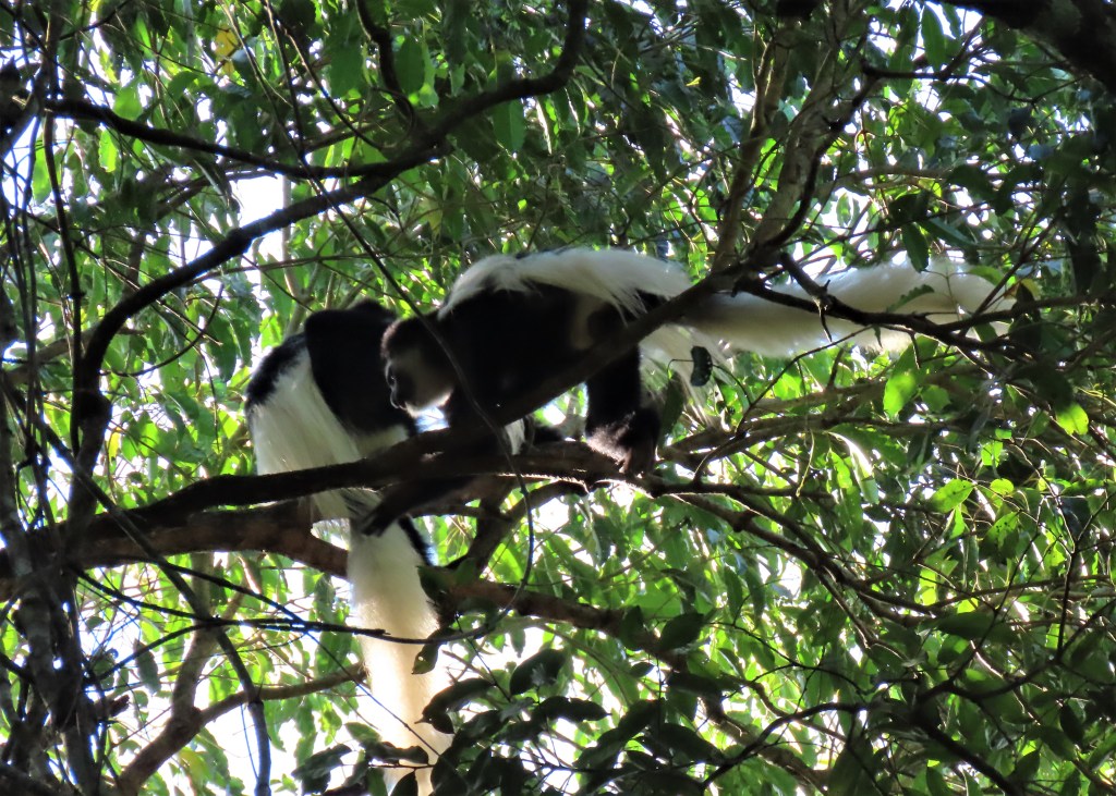 The forests here are spectacular as are the crater views and views of Mt Meru. We see our first black and white colobus monkeys ever! Flinging themselves with abandon from tree to tree high up in the canopy in the morning light.