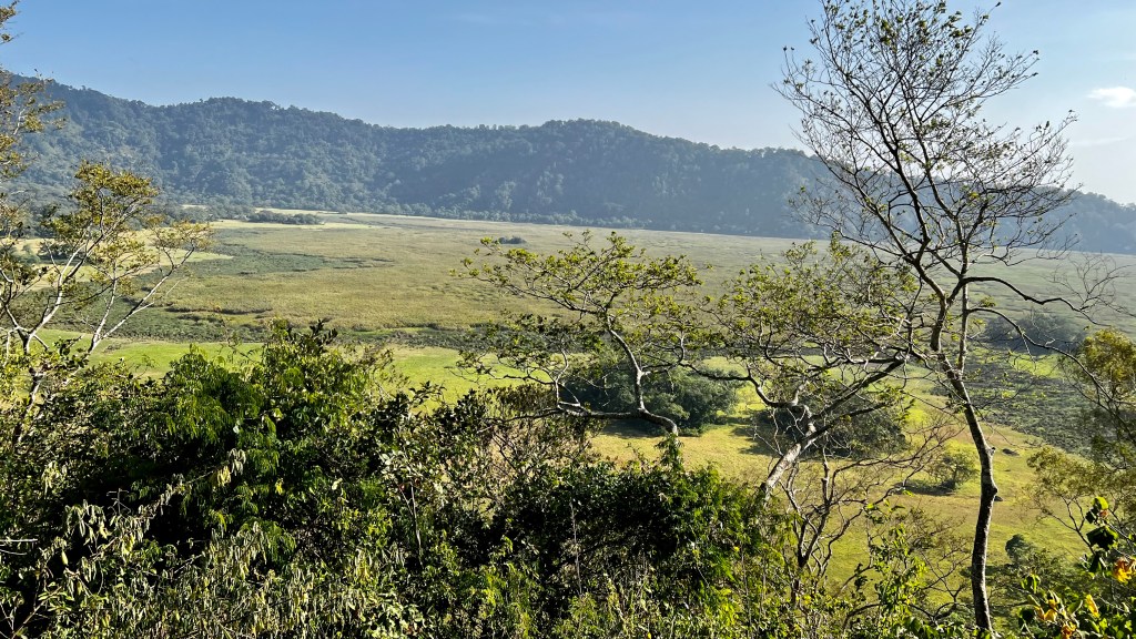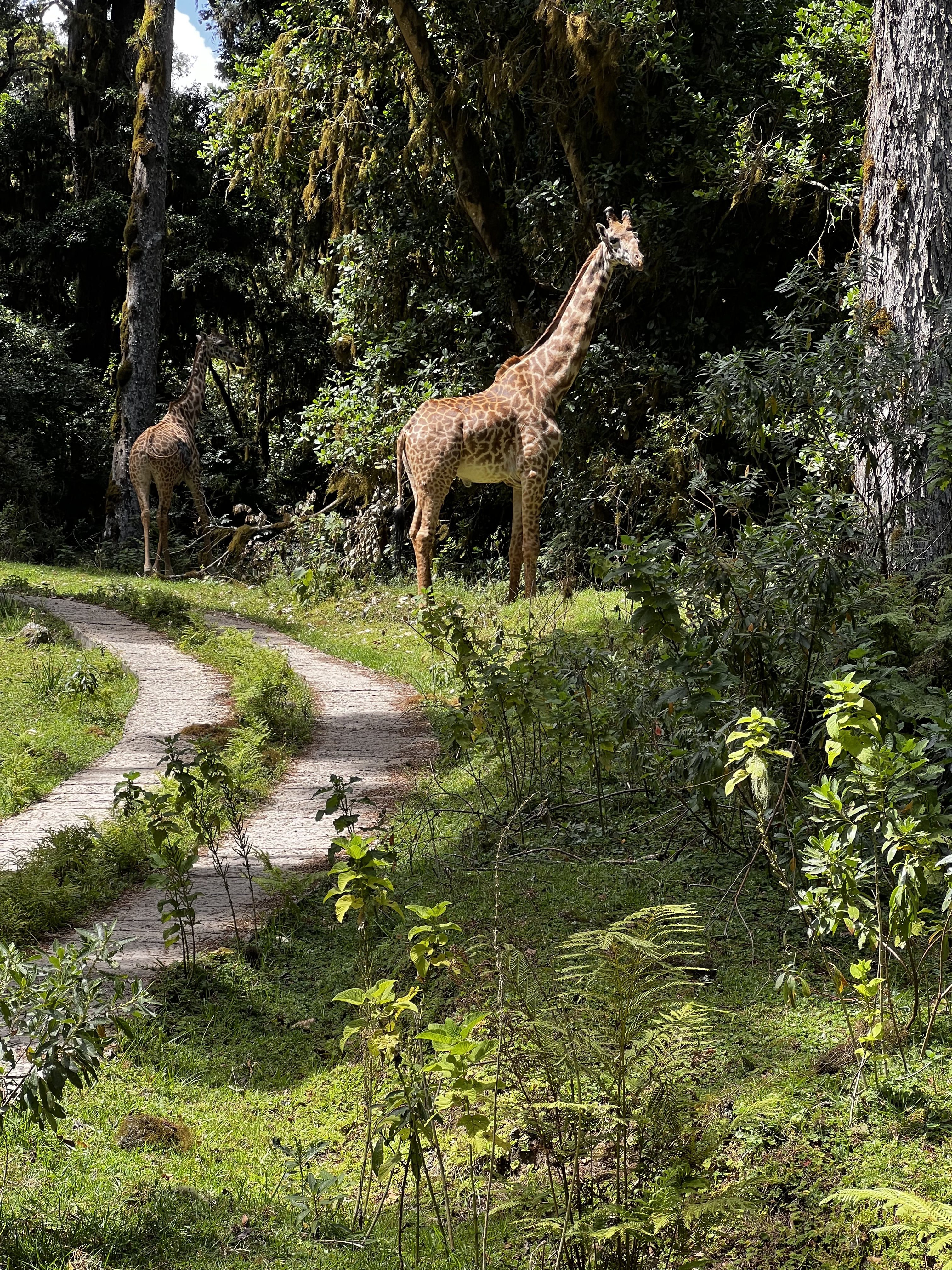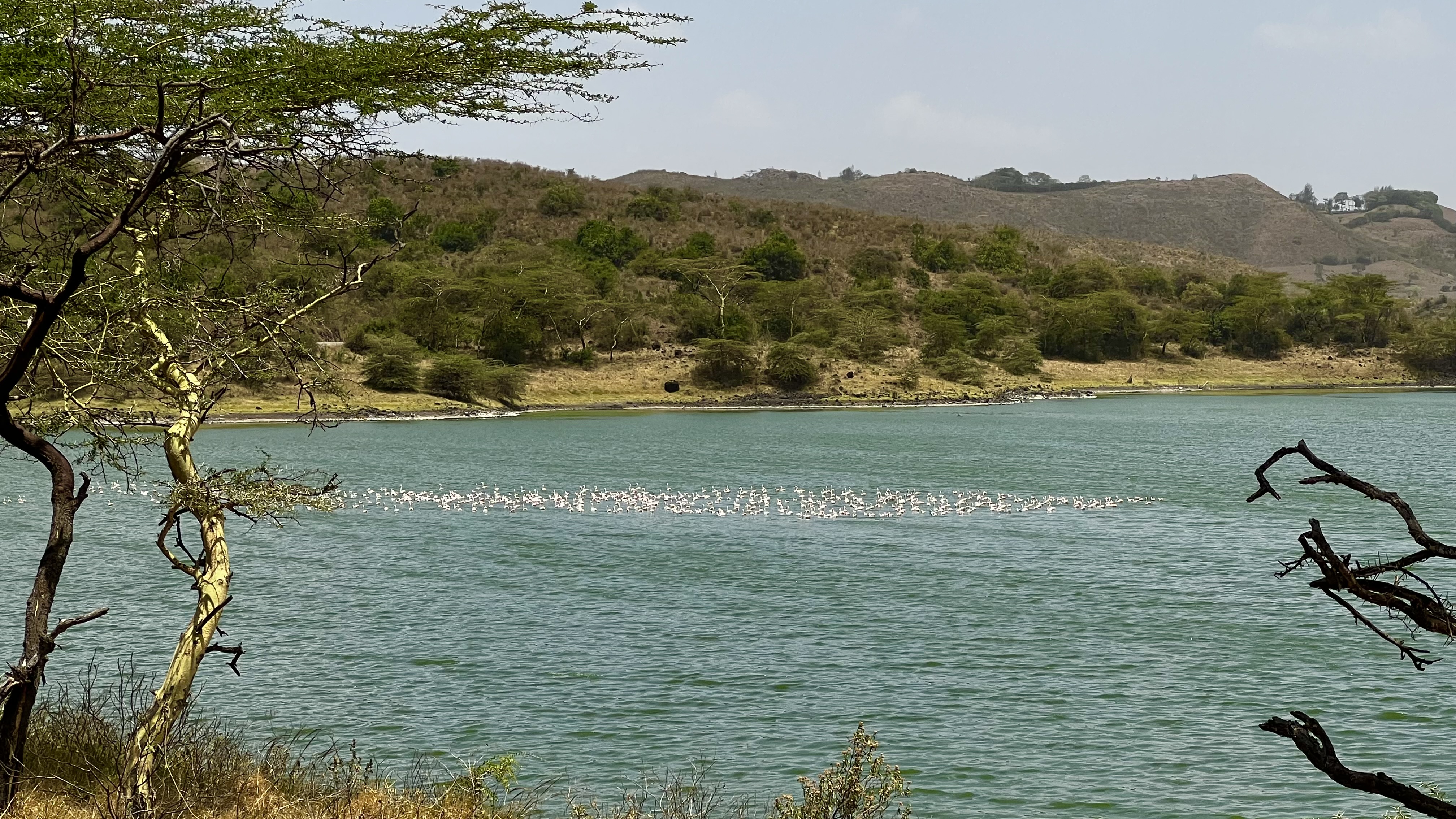 We spent the day exploring: forests, craters, lakes, mountain climbing giraffe, flamingos …