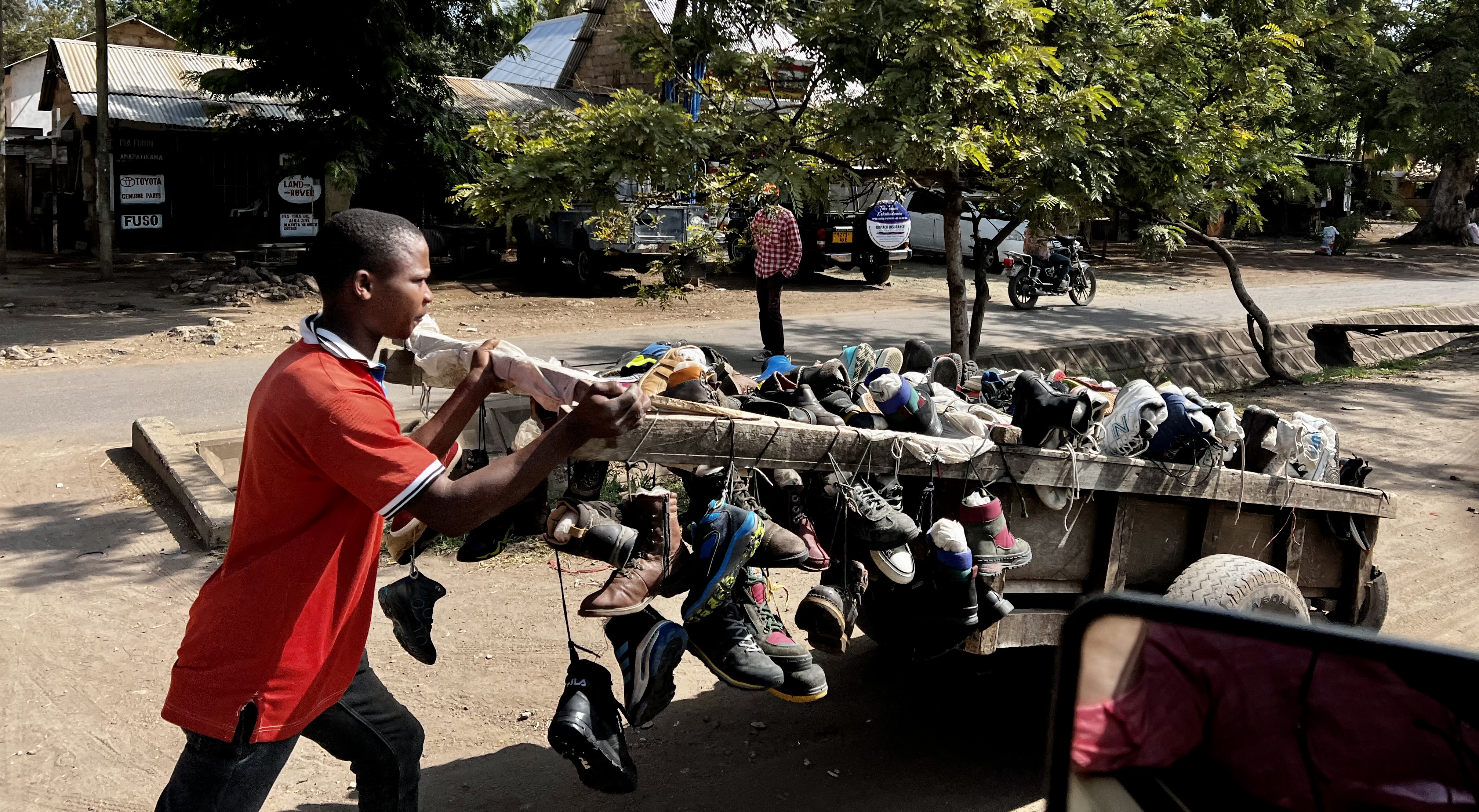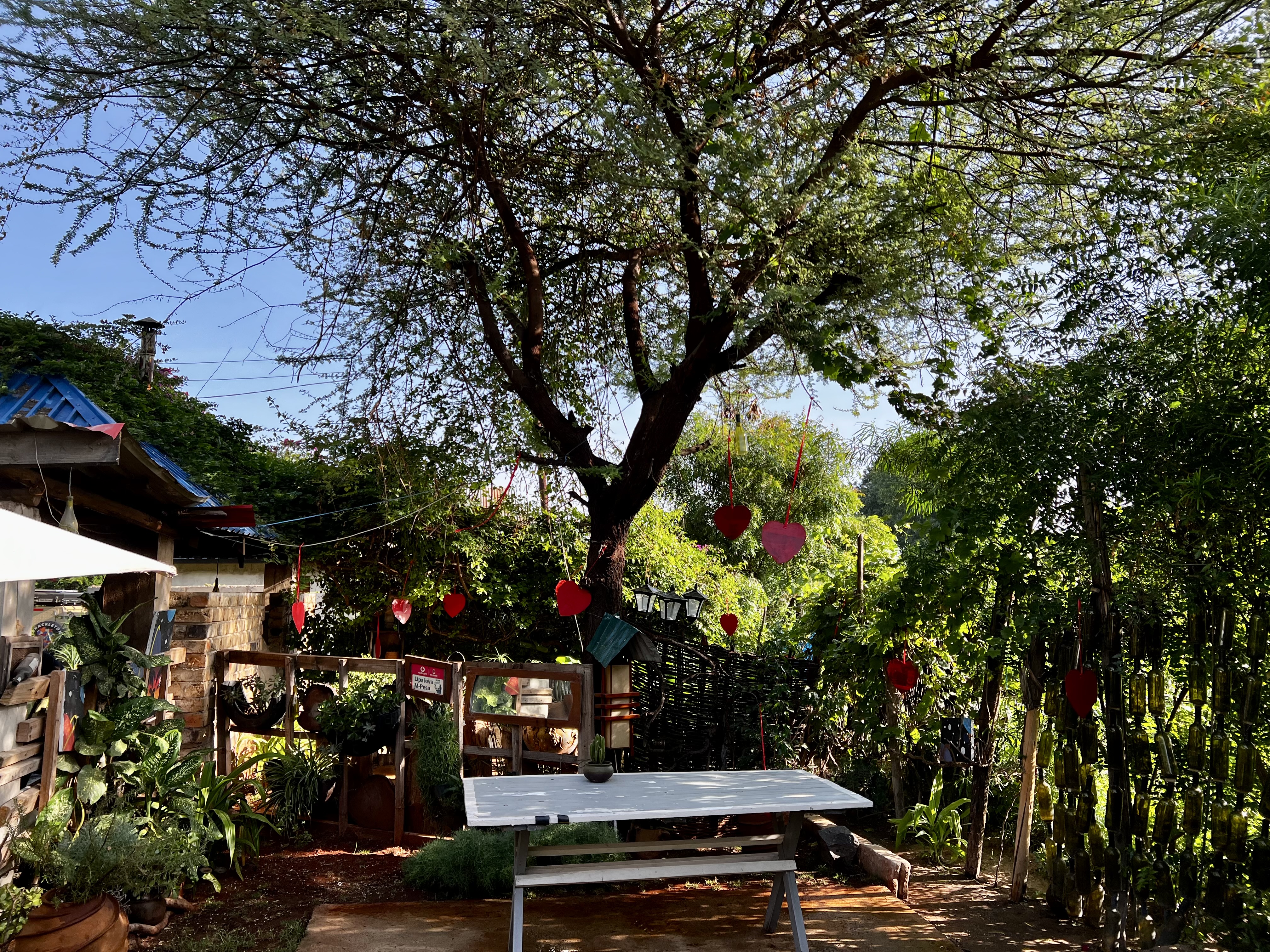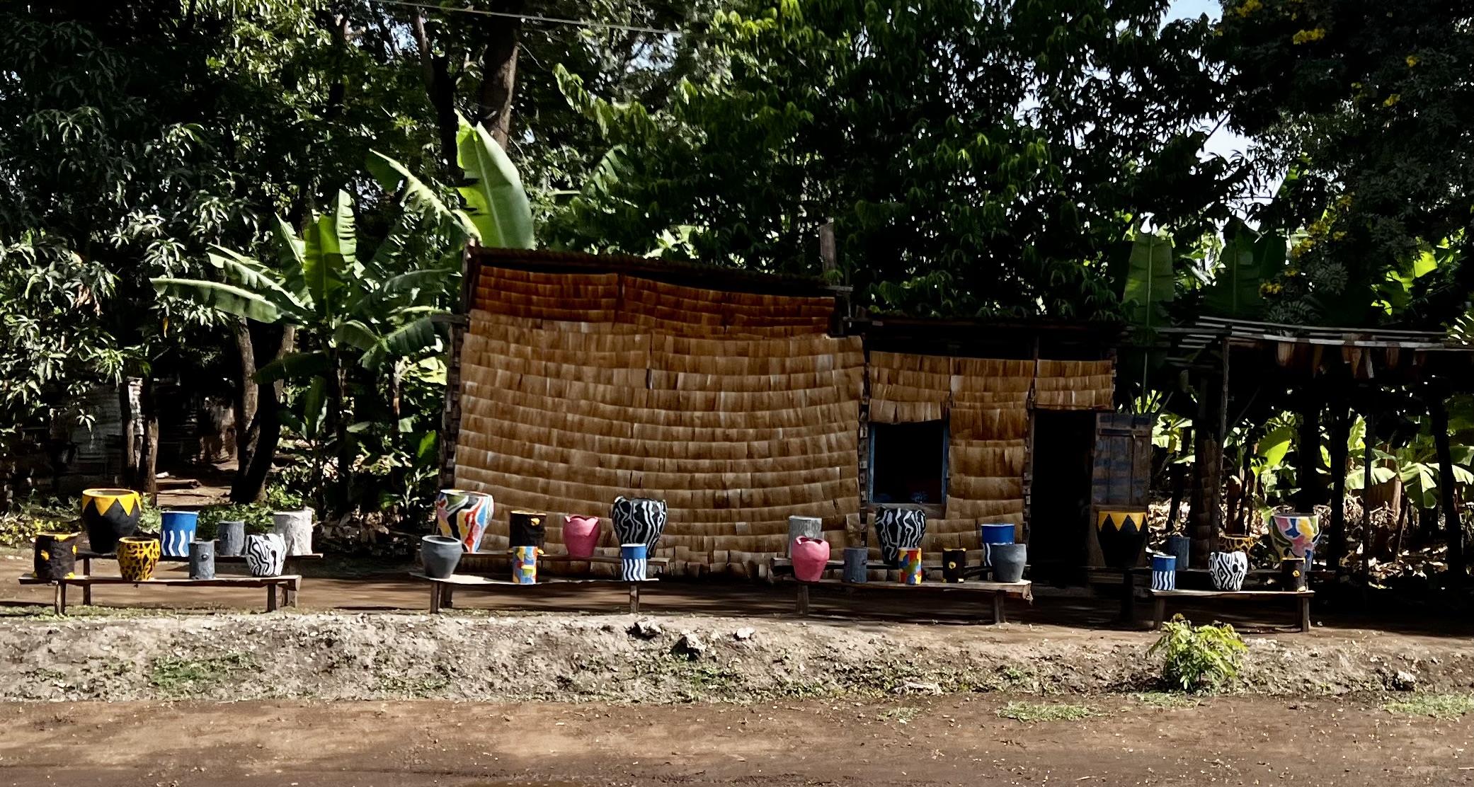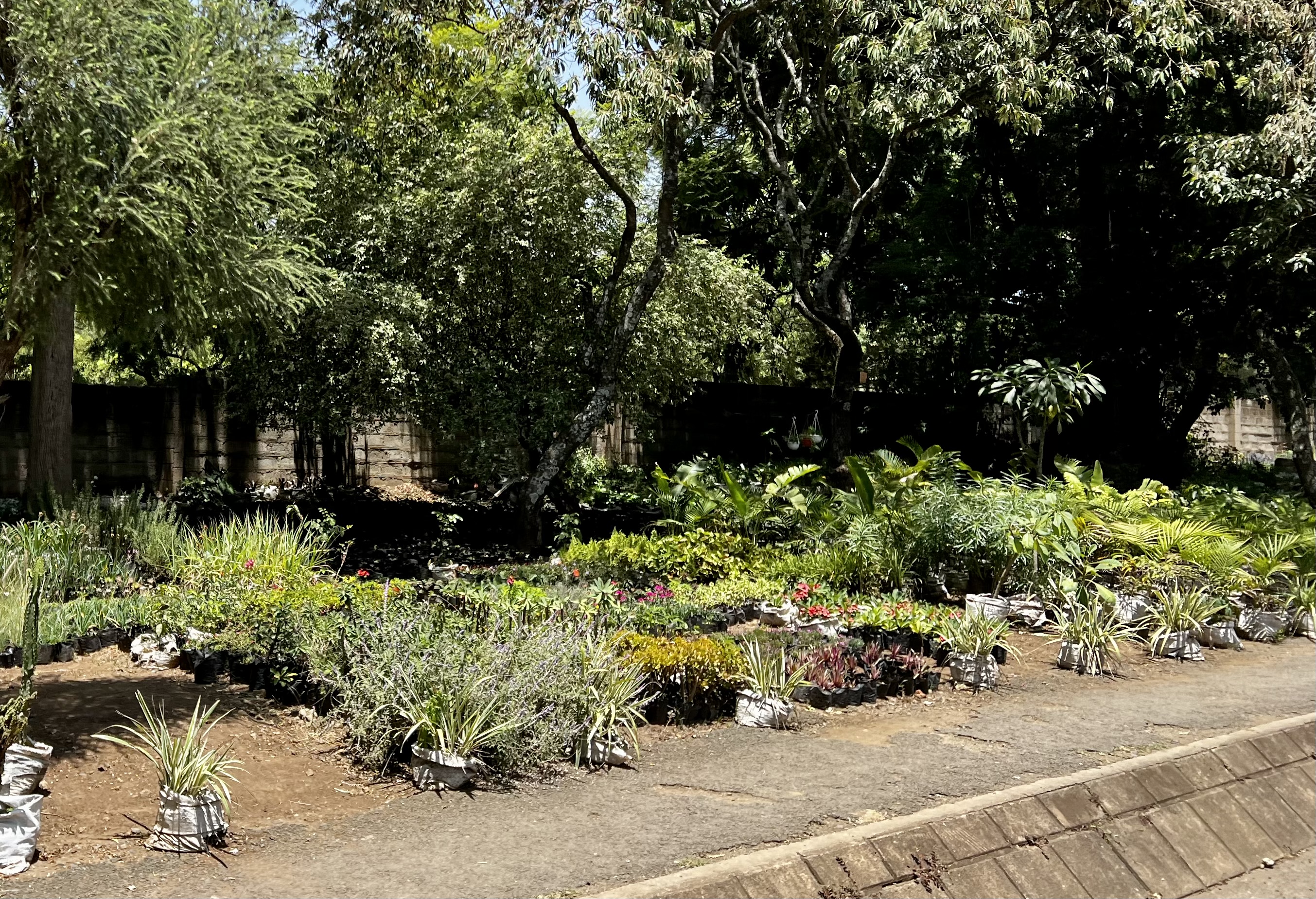 Arusha is a big bustling town, and surely has the highest concentration of land cruisers in the world. We make out way slowly through the town. Deb is driving and I can’t help but notice how relaxed she is in the slow but noisy and chaotic traffic – we are both getting used to the flow of things. The town is energising with all the hustle and bustle. Am completely taken with the roadside plant nurseries – on one street they stretch for over a kilometre – shade loving plants under the trees on one side – sunny plants on the other, along with various pots , garden ornaments etc. The selection is vast – indigenous and exotic, simple and hybridised. Love it. We nickname this street nursery lane – it turns out to be a helpful landmark for navigating.