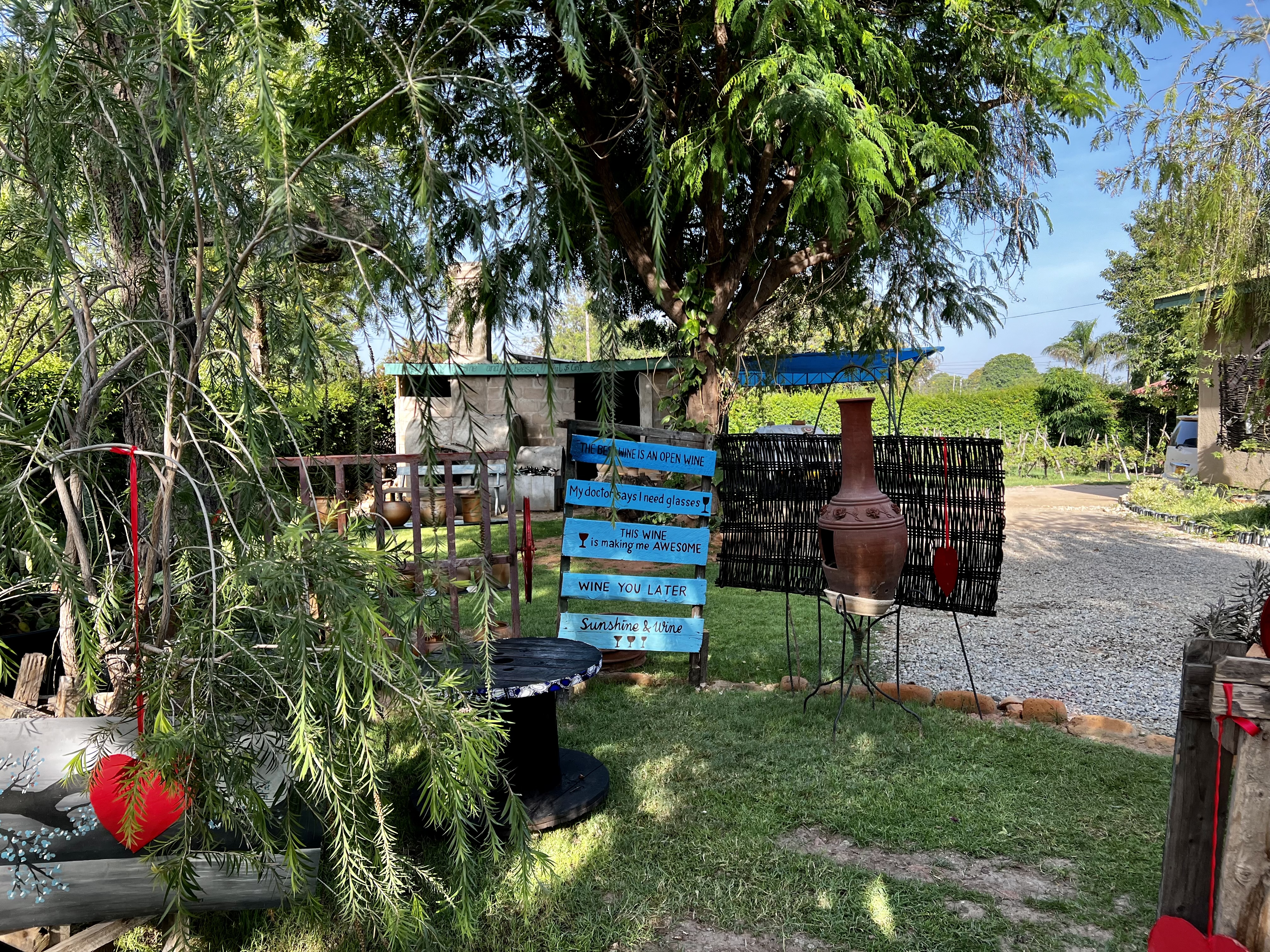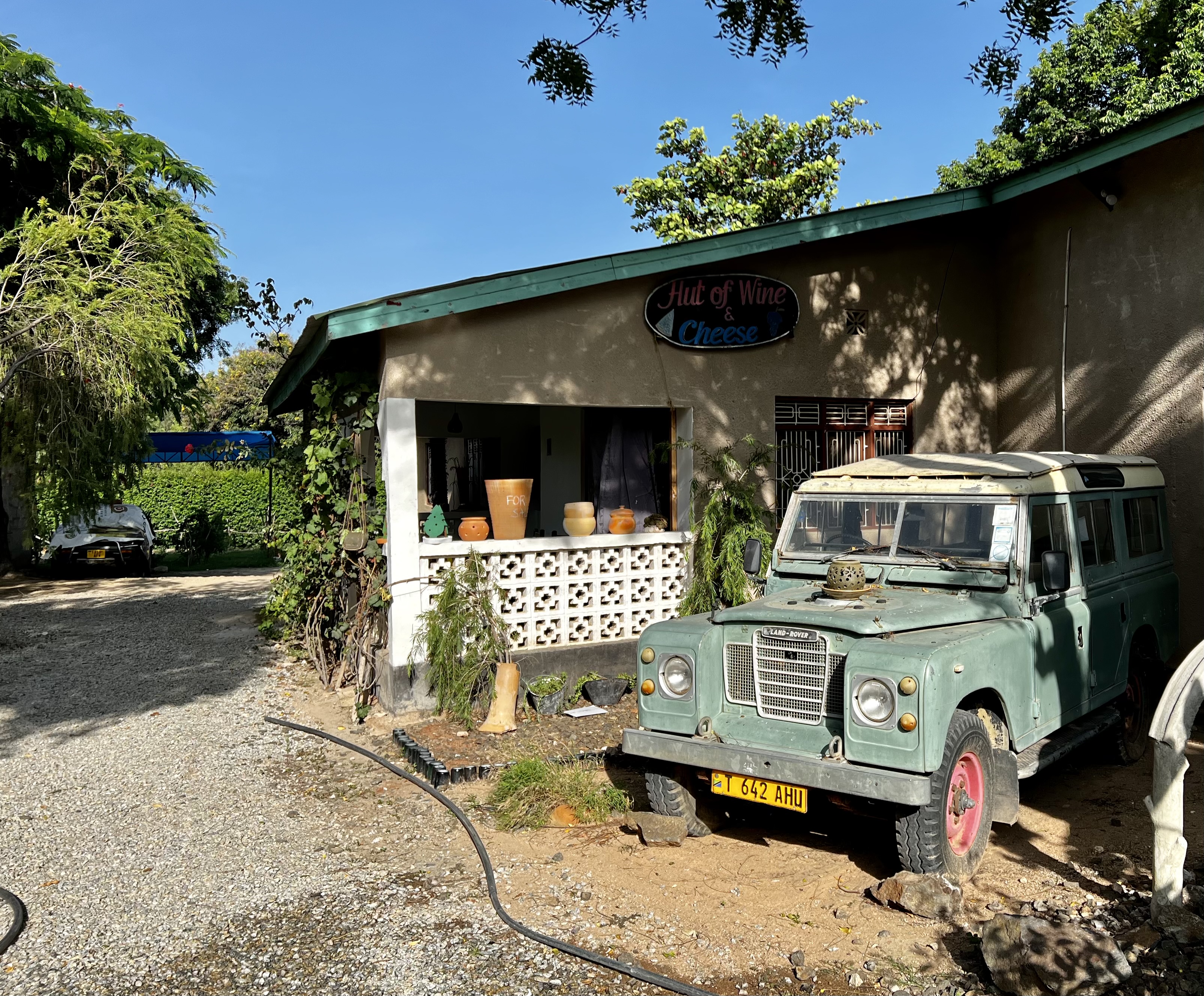 Dodoma is the capital of Tanzania, it is also the only wine growing area in the country. What better reason then, to make The Hut of Wine and Cheese our destination for today. The owner, winemaker Atwitye Makweta has made it her mission to promote Tanzanian wines and hosts festivals and tastings for foreigners and locals alike. We find the place easily and check things out – they do offer camping but it is real carpark camping and I think you’d feel on display slap in the middle of things They also have a couple of self-catering units and we are shown one where we can park directly outside – it has a kitchenette, bathroom, bedroom and small enclosed back courtyard its very nice – we’ll take it.
