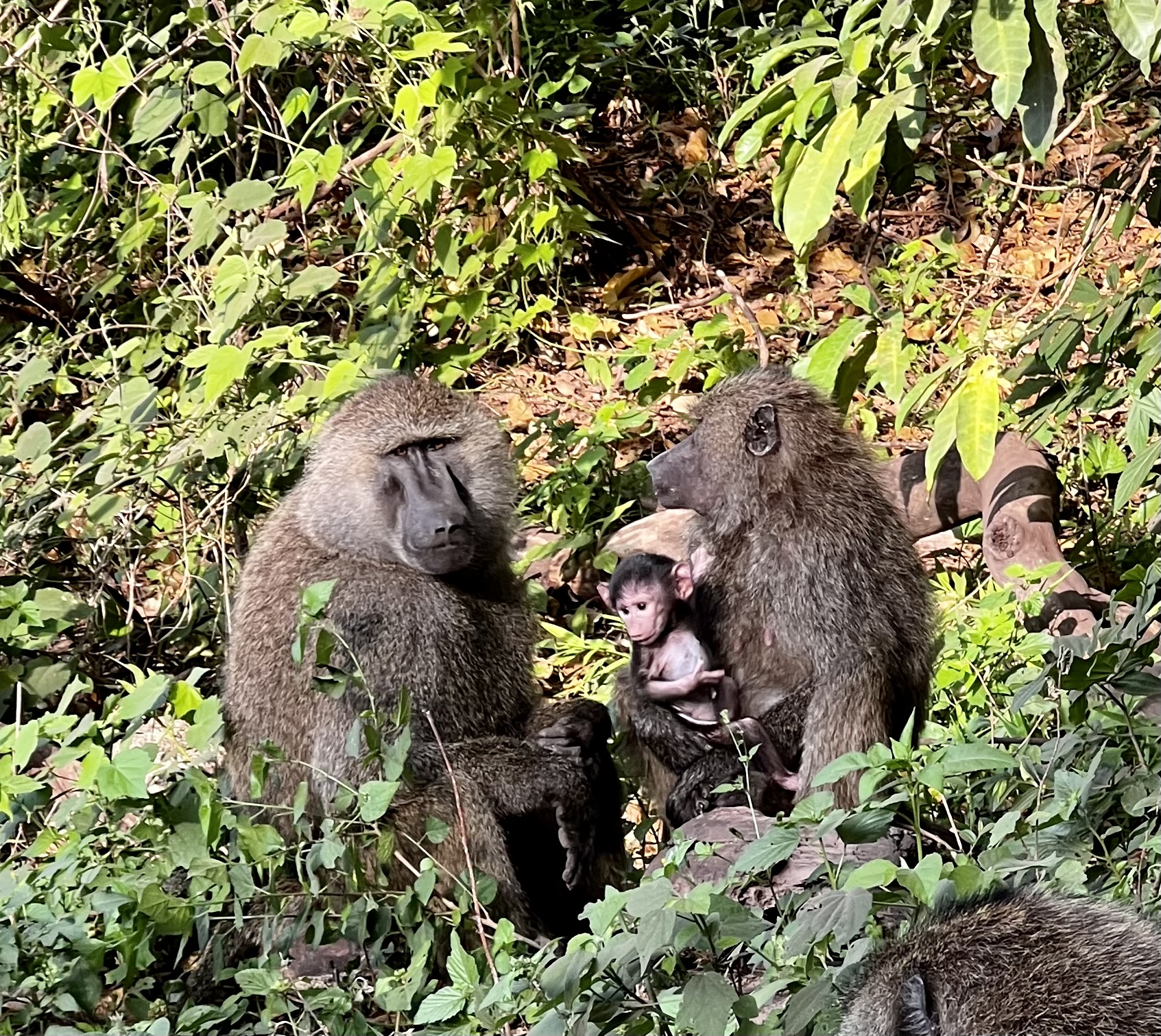 First off we see a pair of casqued hornbill – silvery cheeked – lots of photos and excitement. And then, of course, loads more . Flying from tree to tree high in the canopy. Also big groups of olive baboon – so much better looking than their southern Chacma cousins