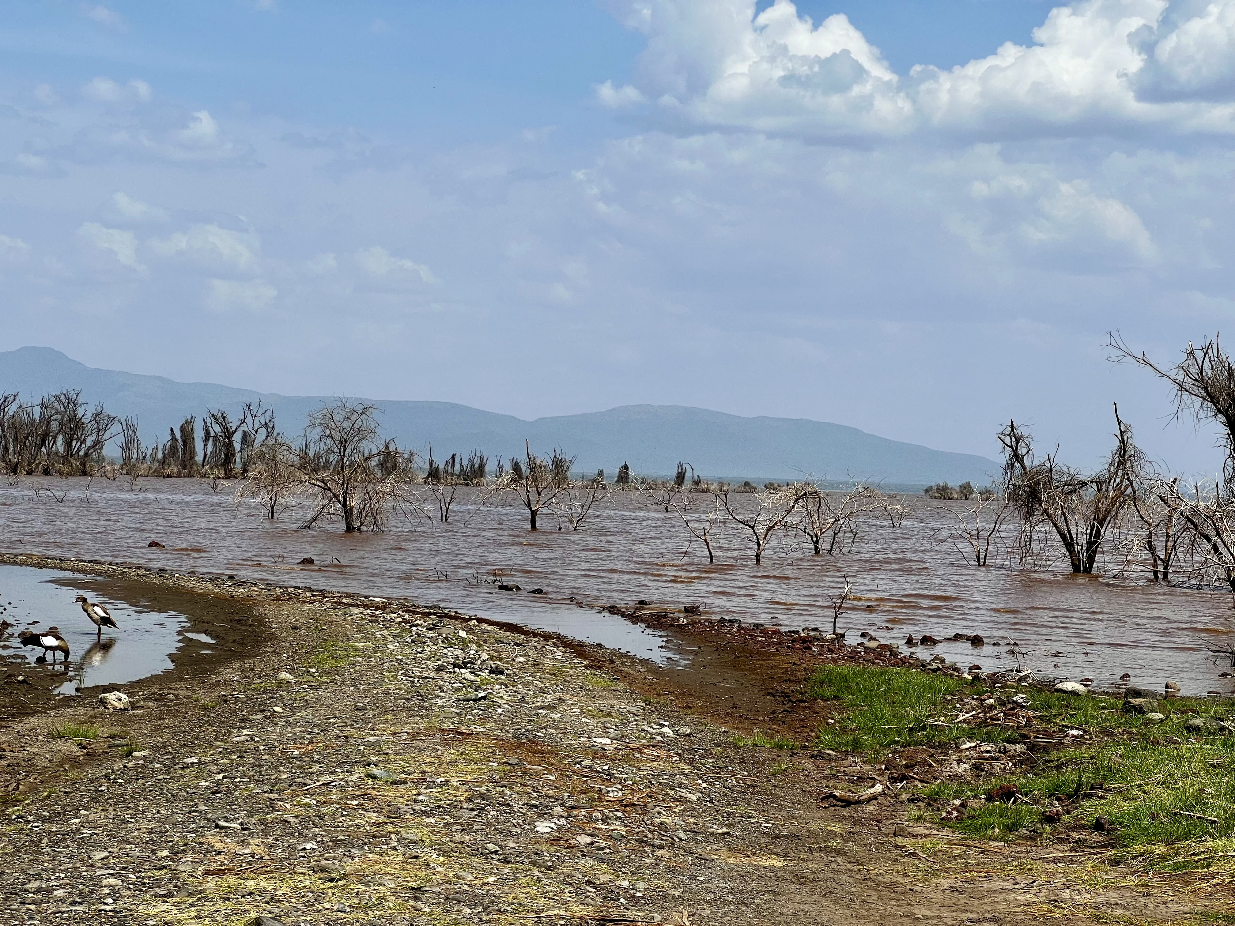 Many of the tracks near the shore are flooded and there are large tracts of drowned trees. The water is very muddy and the usual pelicans and flamingos are absent. The water level is very high – Manyara is one of the southern rift valley lakes and appears to be suffering the same fate as its Kenyan counterparts – rising levels brought on by a combo of changing weather patterns / poor land use, tectonic activity – leading not only to higher water levels but also changes in salinity. So despite the excitement of the lions we both felt a bit down after our visit. What with the drought, and now this. And evidence on the clear fight for resources between wildlife and pastoralists. There is no escaping it. And here we are driving a thumping great diesel powered truck. The irony (although that isn’t really the word) is not lost on me. We are all complicit.