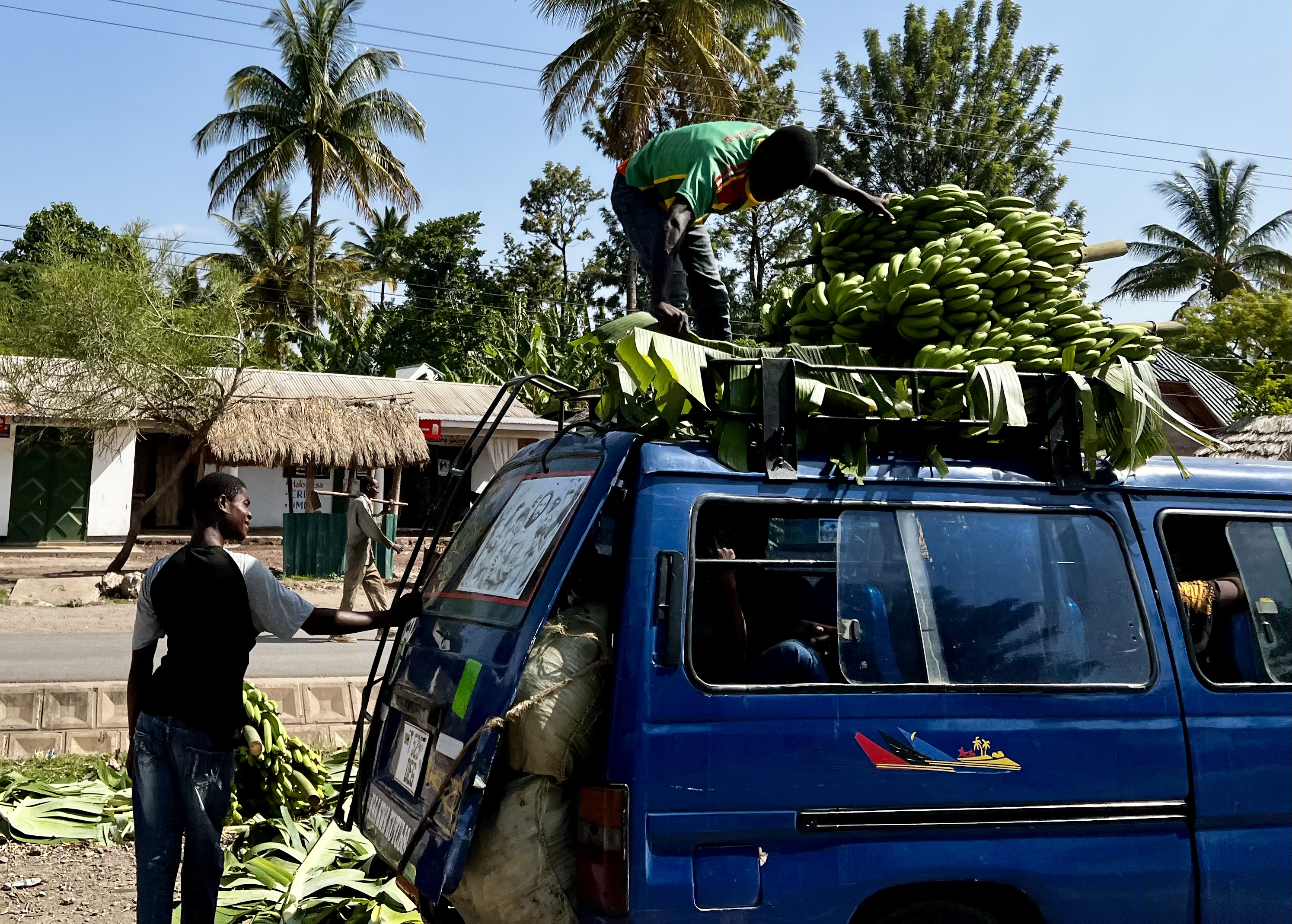 What to do? I apologise. In English. (we’ve been practicing from the Swahili phrasebook but haven’t got to the sorry-for-reversing-into-your-bus bit). The driver just shakes his head and points at the glass. At this point the chap from the Hut of Wine and Cheese, who showed us around, comes out to see what is going on. I ask him to translate for me and I can see the bus driver breathe a sigh of relief. Once it’s clear that I am going to make good on the cost of repairs, we all relax and start talking numbers. Next thing the owner of the Hut of W&C barges across, robes flowing, I’m your host for tonight, she nods at me. And what were you thinking – this is directed at the bus driver. She then continues to loudly berate him: Why are you parked here? Didn’t you see what was happening? You should have hooted! This is your fault too! – now the bus driver is apologising and I’m looking at my feet. Cringing. This is, of course, all a face saving exercise for my benefit. No sooner has she delivered the tirade and she flounces back inside.