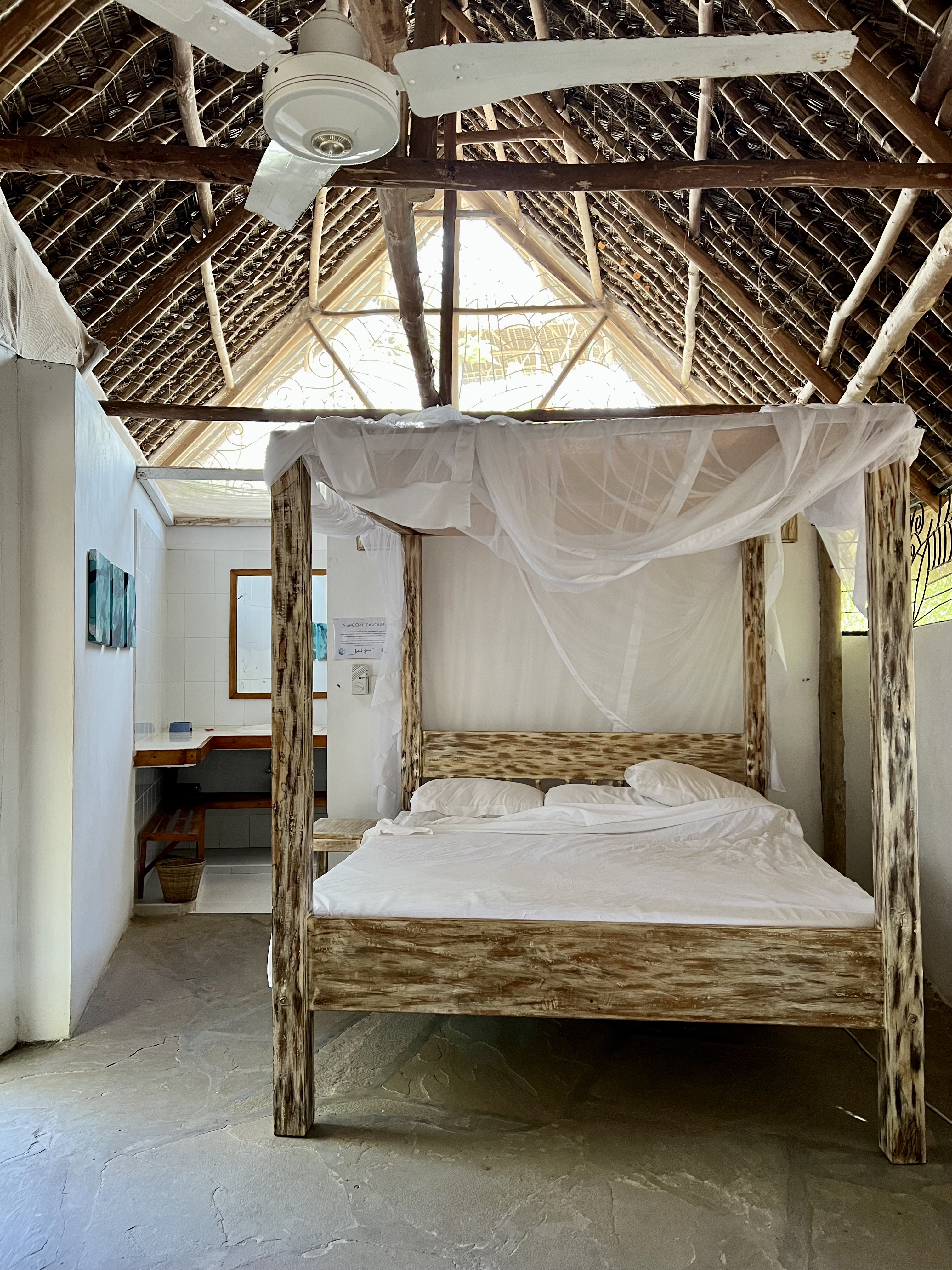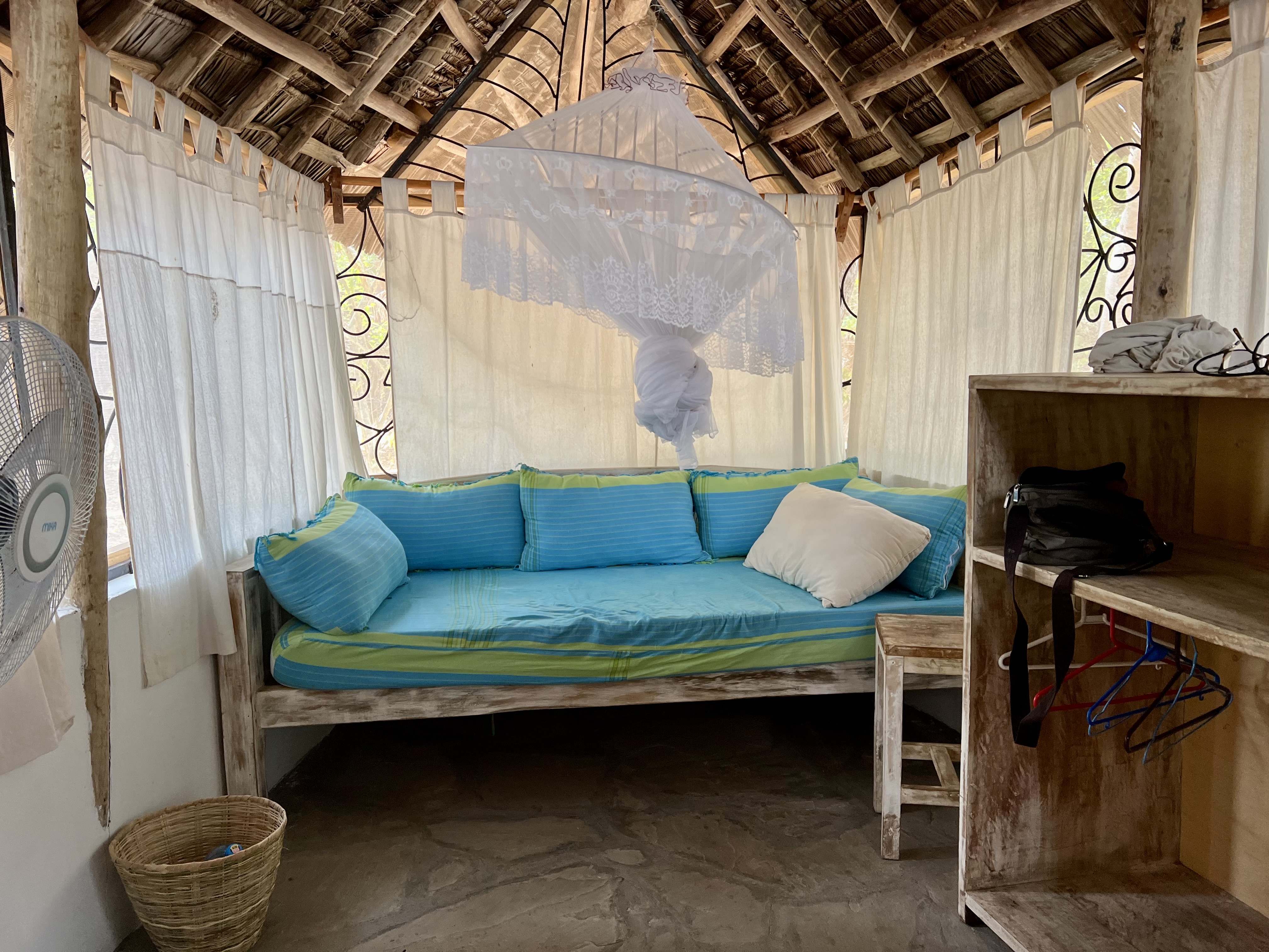 Watamu is essentially a resort town, with a pretty bay on one side and Mida Creek (mangroves, mudflats) on the other. It’s a mix of resorts of various grades as well as some lovely private holiday homes. Camping options are limited and anyway given that we will need to do some work and also in the hope of some aircon (it’s very hot and the humidity is bonkers) we go the self-catering route and end up at Watamu Beach Cottages. It’s a sprawled out complex with a range of varied self-catering cottages and houses, with a central pool and restaurant. It also has direct beach access. They have a 2 sleeper unit available, own bathroom, aircon and then sharing an outside kitchen with another 2 sleeper unit. It’s perfect.